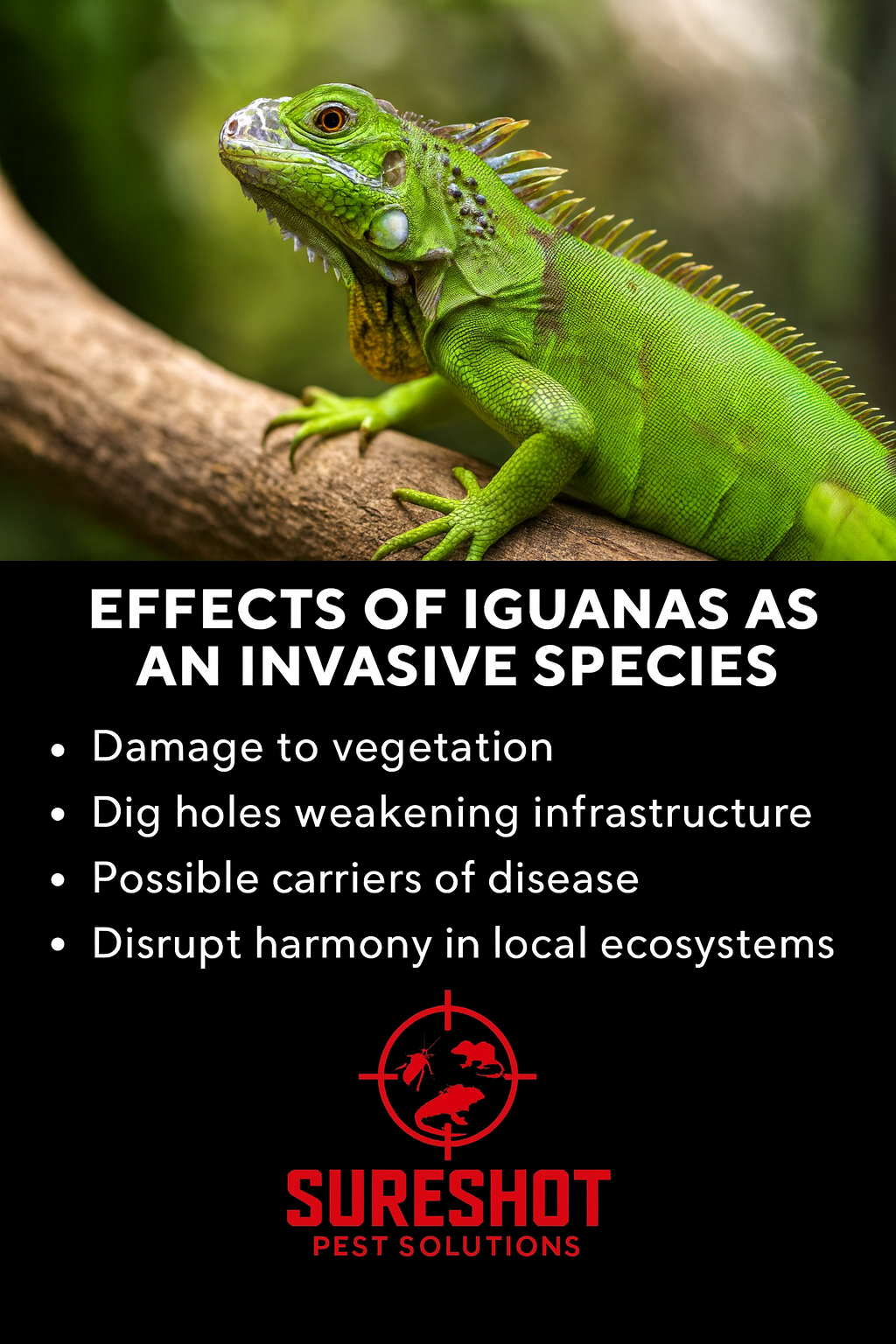 “SureShot Pest Solutions was prompt, professional, and respectful to my family. They removed the iguana safely and explained every step.”